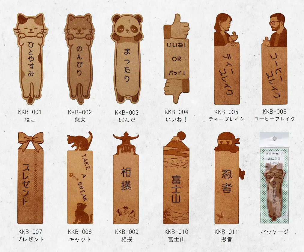 本に挟み、上部を出すだけで、読書時間がぐっと楽しく、ほっこり癒される木のしおり。